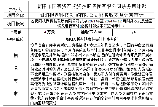 衡陽視界科技發(fā)展有限公司財(cái)務(wù)收支及運(yùn)營(yíng)審計(jì)項(xiàng)目抽取結(jié)果公示